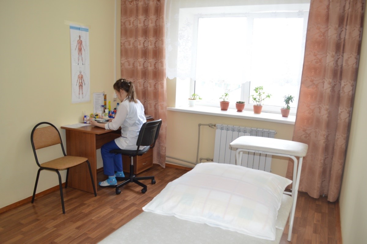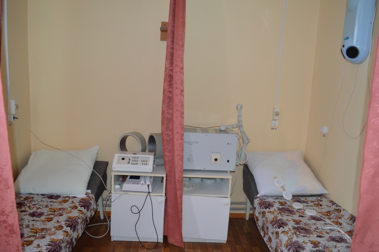 Физио и массажный кабинет: аппарат «Полюс-4», аппарат Алмаг, аппарат АмДГ «Искра», аппарат низкочастотный физиотерапии «Амплипульс 5 Бр», аппарат УВЧ-80-03, аппарат ультразвуковой терапии УЗТ, облучатель ОРУБ-01-02 дезар, облучатель УФ-коротковолновый переносной, парафинонагреватель.