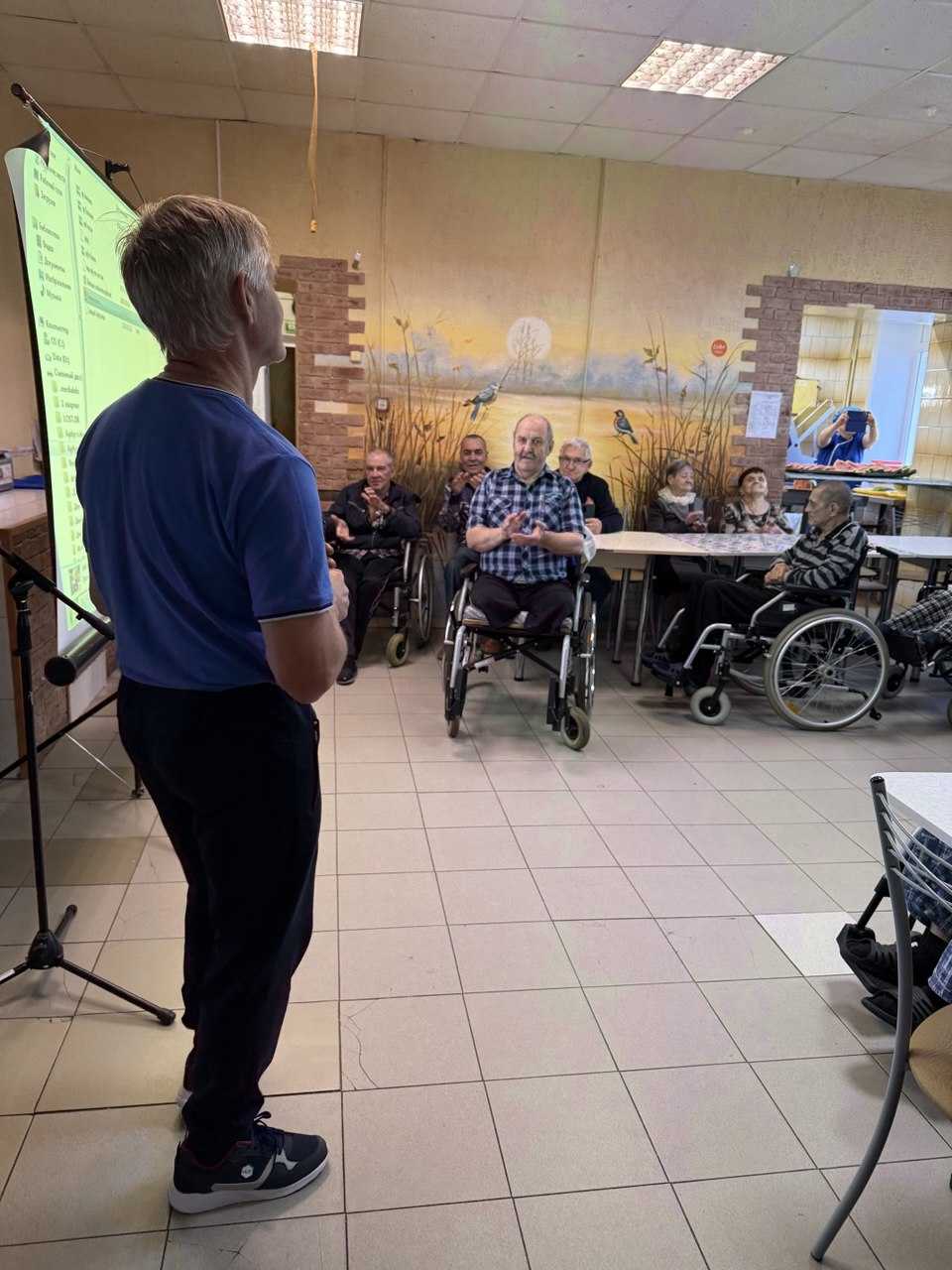 ?Программу продолжил наш талантливый сотрудник Александр Максимов. Он исполнил зажигательные песни и поднял настроение получателем социальных услуг на весь день!