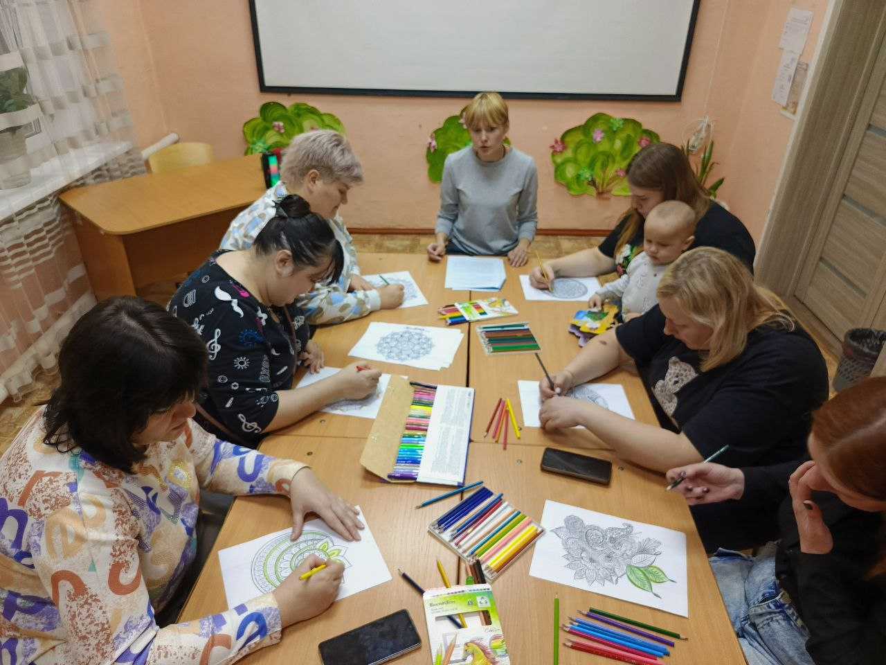 Все участники тренинга с удовольствием принялись за раскраски. По итогам мероприятия мамы отметили у себя улучшение настроения и эффективность данной методики. Завершили встречу традиционным чаепитием.☕