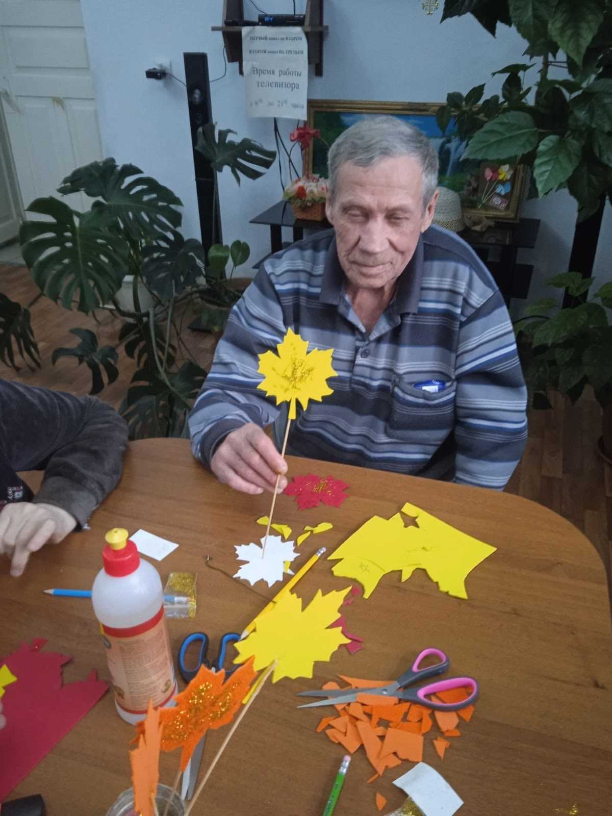Сегодня для наших проживающих в доме интернате прошел мастер-класс по бумагопластике «Кленовый лист» — это замечательная возможность развить творческие навыки и создать великолепное произведение искусства своими руками. Подготовила и провела мастер класс руководитель по ДПИ Попкова Л.В. Такой мастер-класс не только способствует развитию художественных навыков, но и создает атмосферу прекрасной осени.