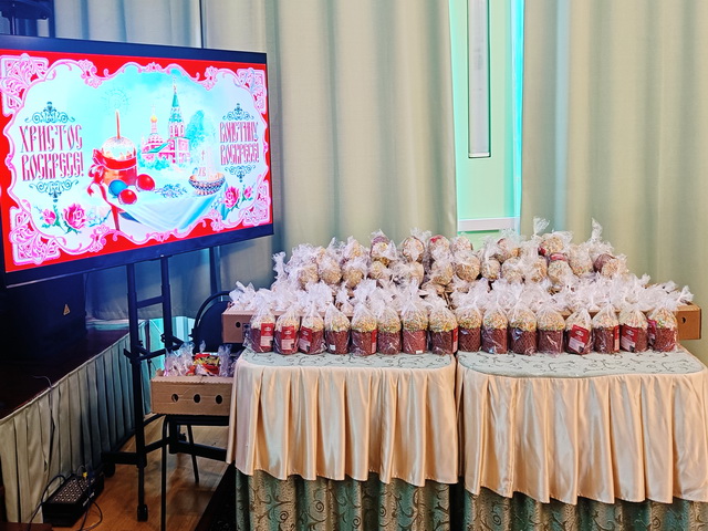 Владыка Парамон сердечно поздравил всех, кто проживает в учреждении, с великим праздником. Каждому он преподнес в дар освященные пасхальные куличи и памятные сувенирные яйца. Юные артисты из театральной студии ДК СПК им. Куйбышева с воодушевлением представили на суд зрителям православную программу "Светлая Пасха".