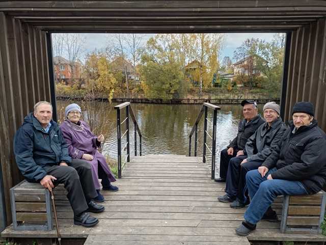 Получатели социальных услуг посетили парк Покровский. В парке проживающие погуляли, посидели на скамейках и покормили уточек.