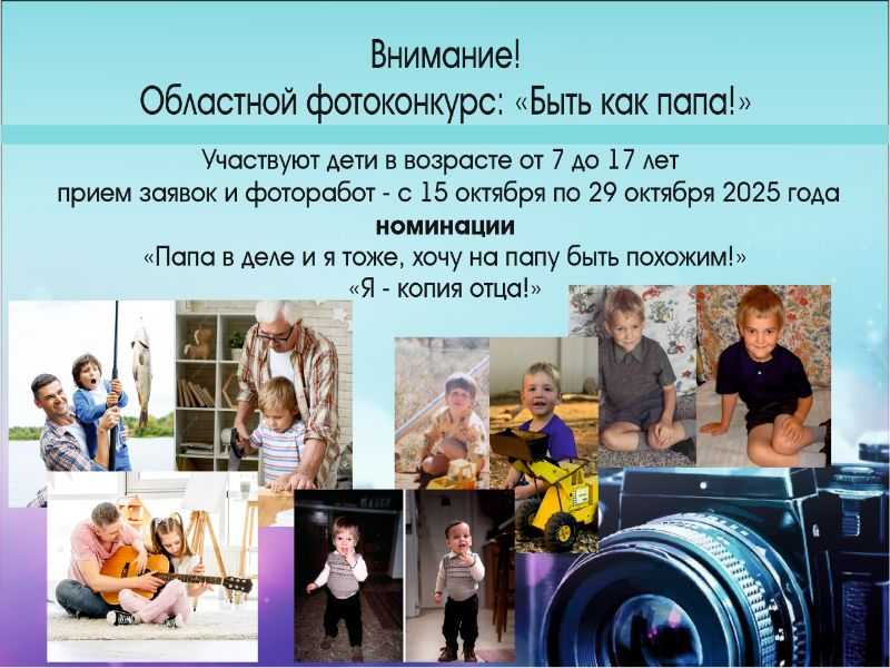 • Участникам необходимо предоставить фотоколлаж из фотографии отца (деда, отчима) и ребенка/детей в одном возрасте.