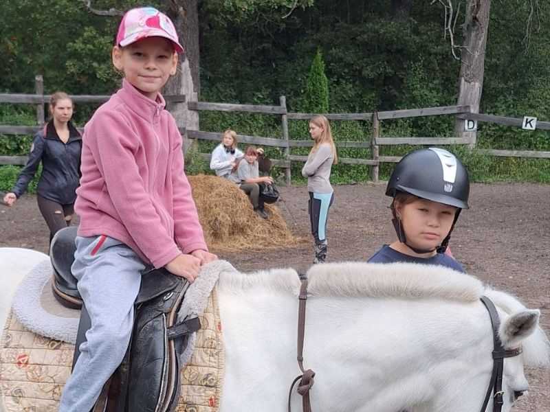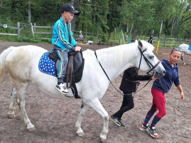 Улыбки не сходили с лиц детей, когда они верхом прогуливались по манежу, наслаждаясь каждым мгновением на спине этих замечательных животных.