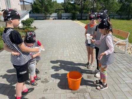 Каждый ребенок, облаченный в пиратскую бандану соревновался в ловкости, демонстрировал меткость с помощью водяных пистолетов в увлекательных конкурсах с водой.