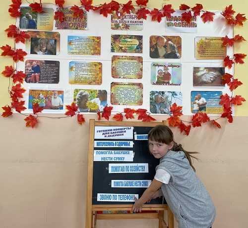 На фоне медленной композиции «Осень» Энрике Морриконе педагогом – психологом было прочитано трогательное стихотворение Л.Аверьяновой «Старость надо уважать». Дети глубоко прочувствовали услышанное, и в их высказываниях прозвучала мысль о том, что каждый человек, молодой или старый нуждается в помощи, сочувствии, внимании, заботе.