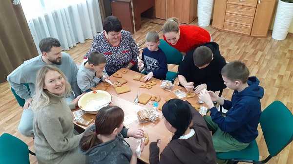 В начале мероприятия они провели с воспитанниками «Мастер-класс» по изготовлению Новогоднего пряничного домика. Ребята с огромным желанием склеивали детали сказочного домика, наносили узоры на стены и крышу ароматной кондитерской глазурью для росписи и декорировали разноцветной кондитерской посыпкой свои сказочные домики. Дети словно превратились в настоящих художников и даже в сказочных волшебников, когда положили внутрь домика светодиоды.