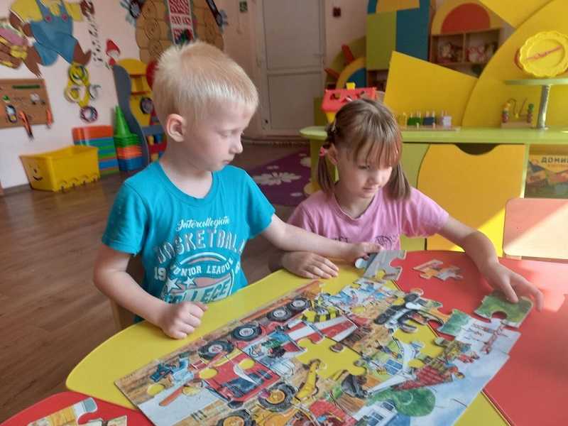 В завершение занятия ребята собирали пазлы с изображениями различных профессий. Это не только развлекло детей, но и способствовало развитию их мелкой моторики и логического мышления.