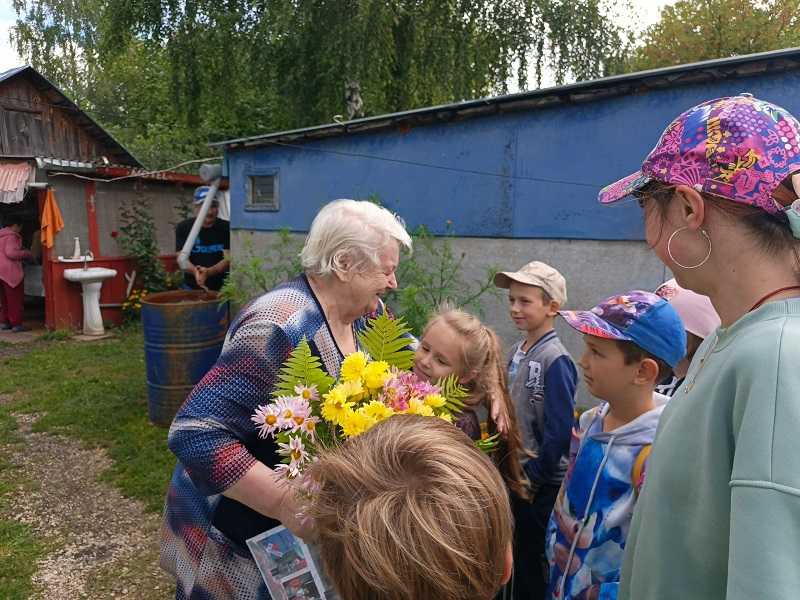 Дети, посещающие отделение дневного пребывания поздравили Людмилу Васильевну с юбилеем и подарили открытку, сделанную своими руками и букет хризантем.