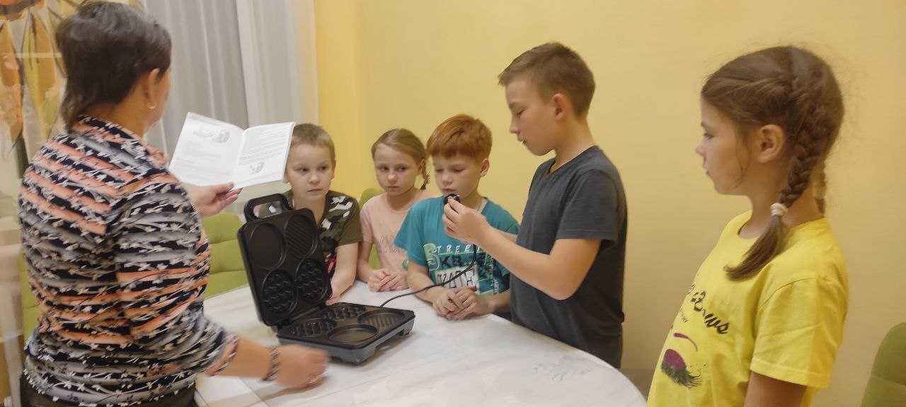 Перед тем как приступить к готовке, мы обсудили важные правила по технике безопасности. Ведь работа на кухне требует внимательности и осторожности! Воспитанники узнали, как правильно пользоваться электровафельницей, а также о том, как избежать неприятных ситуаций. Теперь они знают, что безопасность — это прежде всего!