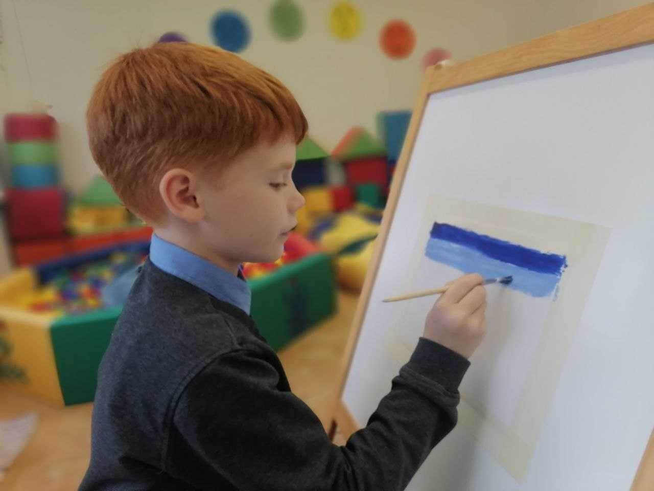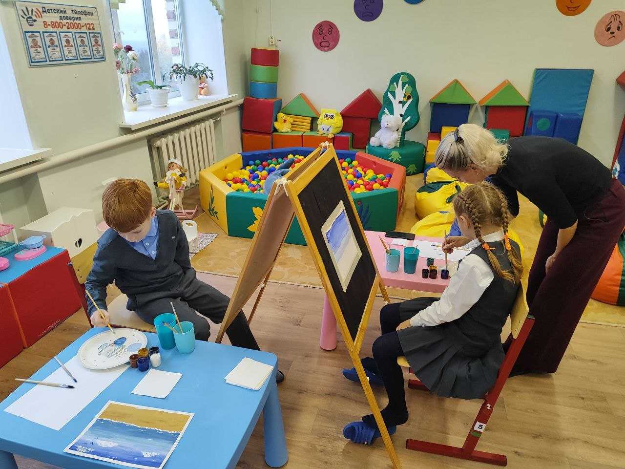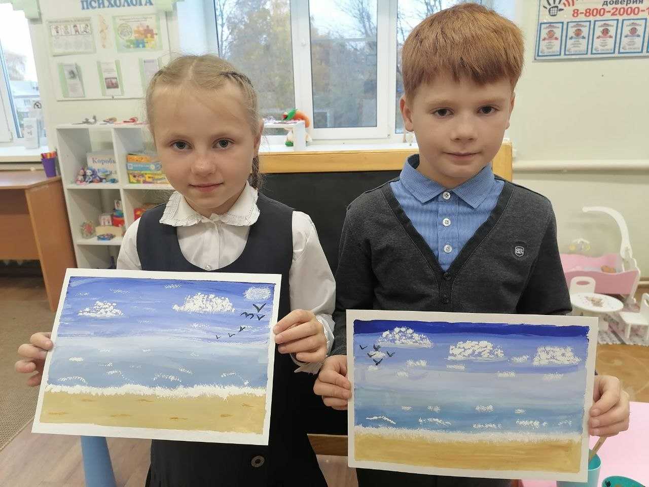 Во время занятия ребята рисовали море, погружаясь в мир ярких красок и форм. Отсутствие оценок позволило им свободно экспериментировать, выражать эмоции и мысли.