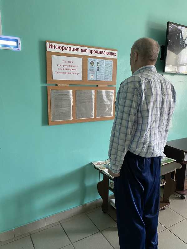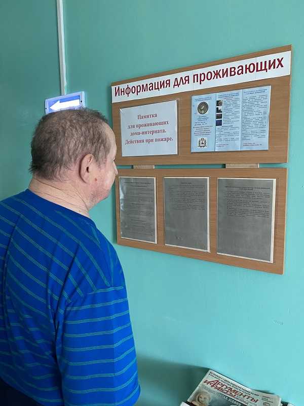 Для проживающих нашего дома-интерната оформлен информационный стенд «Действия при пожаре».
