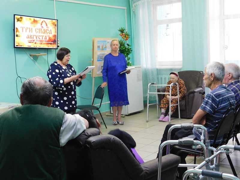 14 августа работники поселковой библиотеки провели для проживающих нашего дома-интерната фольклорный праздник «Три спаса жизнь украсят». На Руси издревле в августе отмечают три замечательных праздника, три Спаса – Медовый, Яблочный, Ореховый. Спас – это древний праздник земледельческого календаря, приуроченный ко времени созревания зерновых культур, овощей, фруктов и других даров земли. В христианской же традиции каждый Спас – это православный праздник, который связан с почитанием Иисуса Христа как Спасителя. Первым из трех Спасов отмечается Медовый - 14 августа. Название праздника связано с работой пасечников, которая обычно начиналась в этот период. Вторым празднуют Яблочный Спас – 19 августа. В этот день обычно приносят в храм собранный урожай яблок для освящения. Третий Спас празднуют - 29 августа. У праздника несколько названий, одно из которых — Спас Нерукотворный. Также он называется Ореховым и Хлебным - в полях убирали рожь и пшеницу.