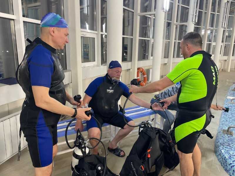 На днях в нашем бассейне прошло практическое занятие. Участники под руководством Ивана Кулыгина отрабатывали технику погружения с аквалангами, чтобы в будущем с легкостью покорять открытую воду.