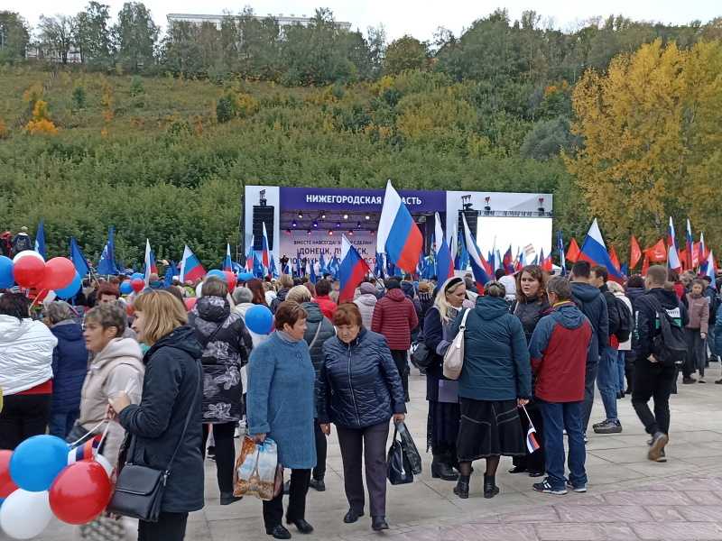 30 сентября в Нижнем Новгороде на территории Парка Победы состоялся концерт-митинг "Своих не бросаем!". В мероприятии приняли участие сотрудники и проживающие Нижегородского дом-интерната. Концерт-митинг "Своих не бросаем!" посвящен подведению итогов референдума о вхождении в состав России Луганской и Донецкой народных республик, Херсонской и Запорожской областей. В концерте приняли участие ансамбль русской песни "Вольница" и лауреаты международных и всероссийских конкурсов Дмитрий Маресев, Дарья Калинина, Татьяна Волкова и Дмитрий Зубарев. Посетителям митинга бесплатно были выданы шарики трех цветов: белый, синий, красный (цвета российского флага) и флаг России.
