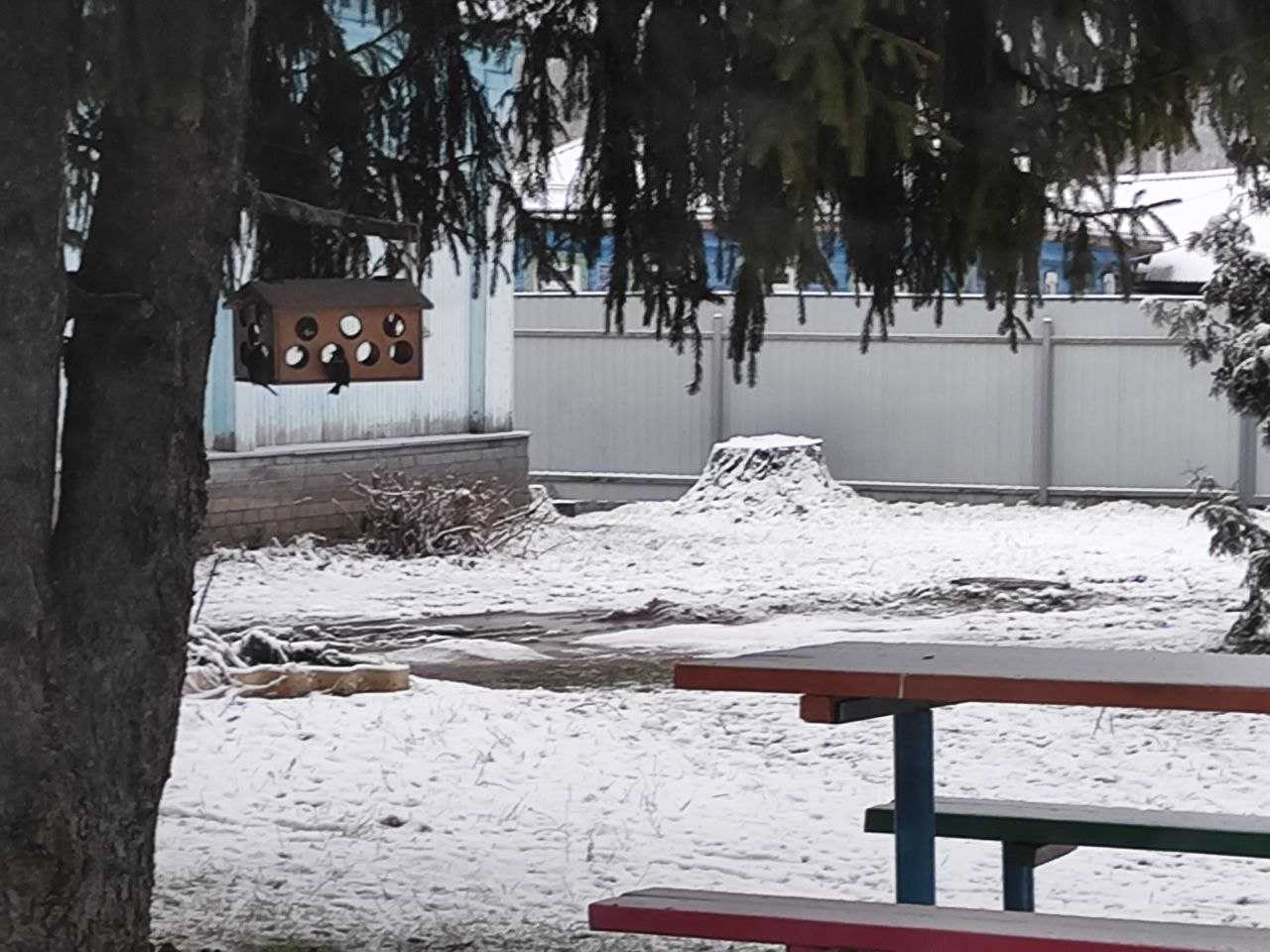 В выходные дни смастерили кормушку для птиц.