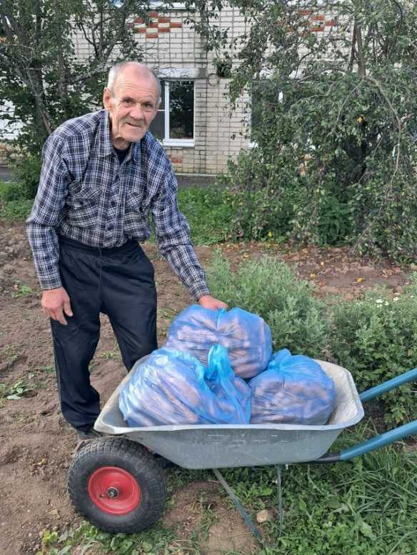 Стоят солнечные ,еще достаточно теплые денечки и наш неутомимый труженик Горьков Александр Дмитриевич не сидит на месте,продолжает трудиться собирая урожай! Александр Дмитриевич радуется выращенному урожаю , а мы сотрудники учреждения радуемся тому ,что он с таким энтузиазмом и удовольствием занимается делом ,которое ему по душе. Не ожидая ничьей помощи с раннего утра этот человек работает на земле . И казалось бы живя в учреждении на полном довольствии и обеспечении зачем ему это надо?...(задаются вопросом некоторые). Быть занятым ,да еще и получать от этого удовольствие -это самое лучшее лекарство для души. А принося результатами своей занятости пользу для окружающих это вдвойне приятно и очень ценно. В этом году также как и в прошлом совместно с Александром Дмитриевичем решили отправить часть урожая на заготовку сухих супов для наших защитников в зоне СВО.?? Пусть тепло души этого простого русского человека согревает наших солдат и напоминает им о доме где их ждут с любовью и надеждой на скорейшее возвращение!