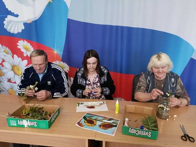 Специалист по социальной работе организовала для получателей социальных услуг занятие по созданию поделок из природных материалов.