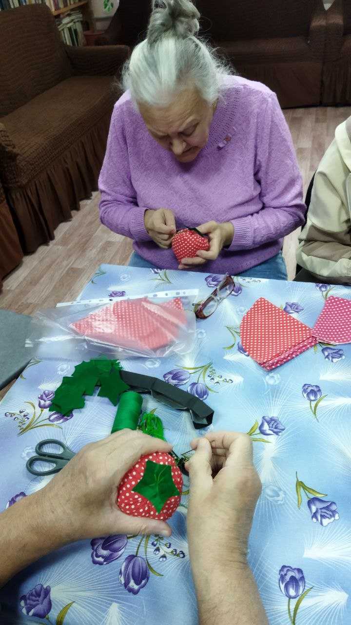Проживающих дома-интерната вновь посетили Спасский МБУК "ЦРНПиТ". Под чутким руководством опытных мастеров каждый смог выполнить красивую ягодку игольницу, а для кого сувенир. Это было невероятно интересно и весело! В завершение творчества Скачкова В.А. прочла стихи собственного сочинения. Были вручены сладкие подарки.