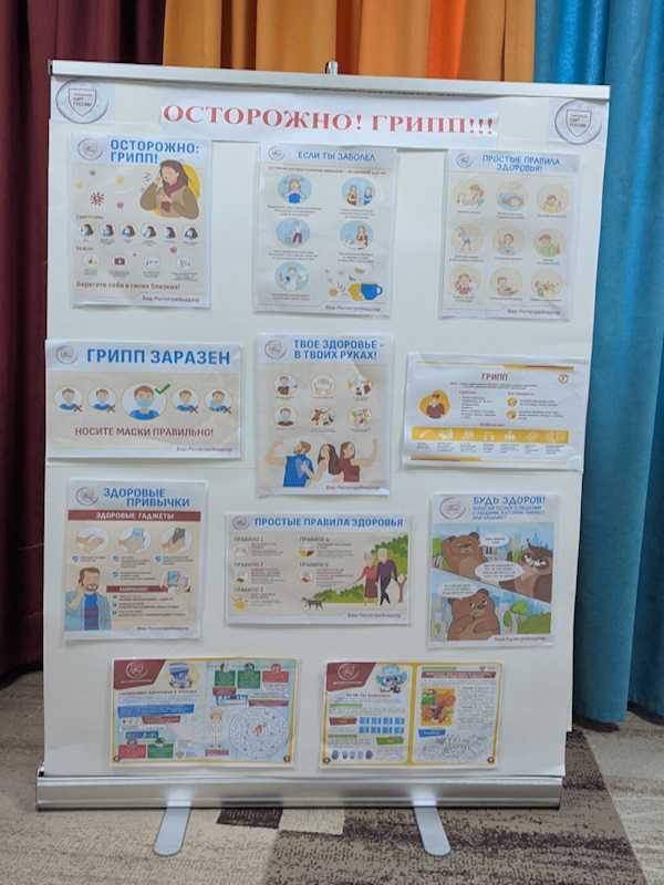 В соответствии с письмом Управления Роспотребнадзора по Нижегородской области от 2 сентября 2025 г. № №52-00-08/03-7862-2025 о распространении информации по профилактике гриппа и ОРВИ в рамках реализации коммуникационной стратегии «Санпросвет» федерального проекта «Санитарный щит страны – безопасность для здоровья (предупреждение, выявление, реагирование)» сотрудники нашего Учреждения изготовили информационный стенд «Осторожно! Грипп!»