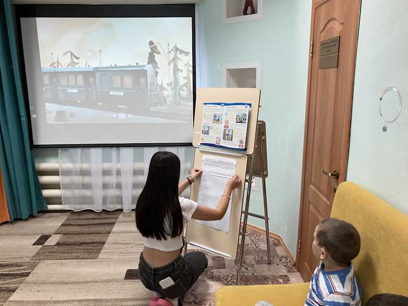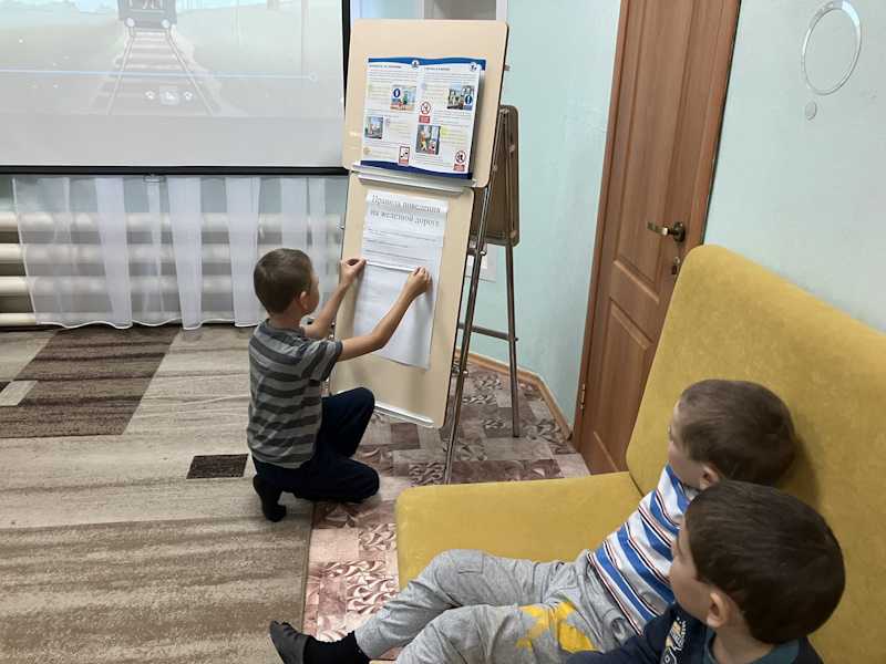 13 сентября в рамках детского месячника безопасности «Уступи дорогу поездам!», направленного на формирование у несовершеннолетних граждан культуры безопасного поведения на объектах железнодорожного транспорта, с воспитанниками была проведена беседа «Правила поведения на железной дороге». Дети рассказали, кто из них был на железной дороге, и как нужно себя там вести. Ребята посмотрели отрывки из мультфильмов и определили, кто из мультяшных героев поступил неправильно. Затем дети сформулировали правила поведения на железной дороге и наклеили их на лист, сделав памятку.