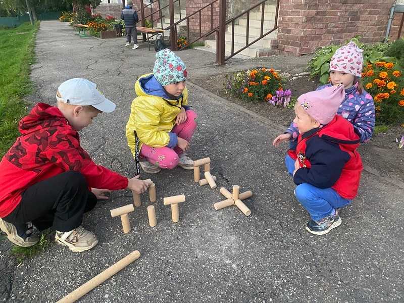 Завершением инфо- часа стала русская народная игра « Городки», где учились сначала выкладывать и запоминать фигуры для игры. Воспитанники с удовольствием играл , проявляя ловкость и сноровку, получая заряд положительных эмоций.