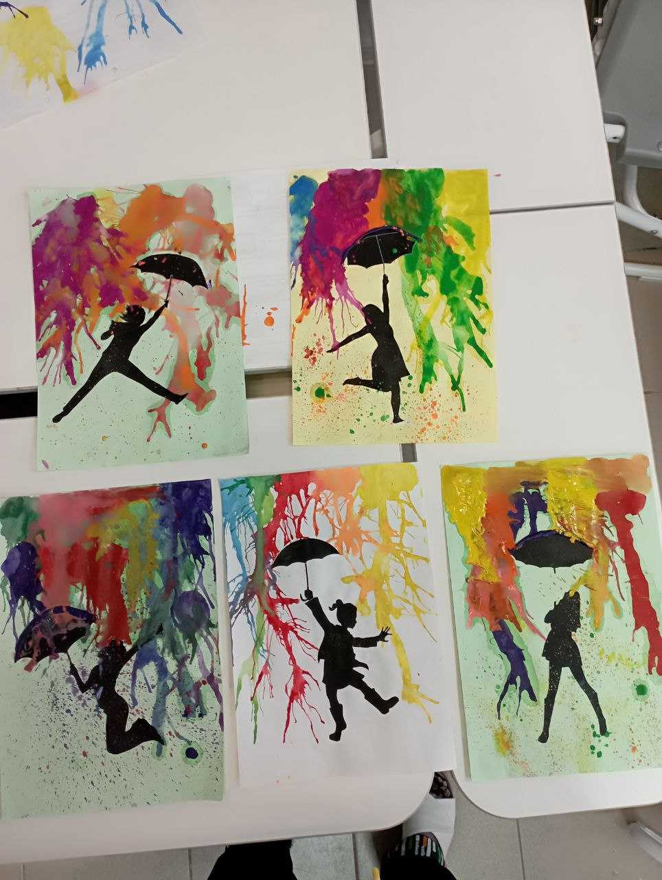 Наши юные художники создали невероятную выставку рисунков на тему «Танцы под дождём»!