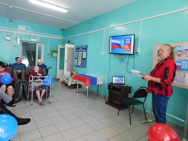 22 августа работники поселковой библиотеки провели для проживающих нашего дома-интерната мероприятие «Овеянный славой Российский флаг…». Сегодня отмечается День государственного флага России. Именно в этот день 1991 года российский триколор был впервые в новейшей истории поднят на здании Верховного Совета РСФСР. Тогда же был принят закон, признавший бело-сине-красный флаг официальным символом России. Библиотекари рассказали присутствующим об истории флага России, его значении в наши дни и правилах использования.